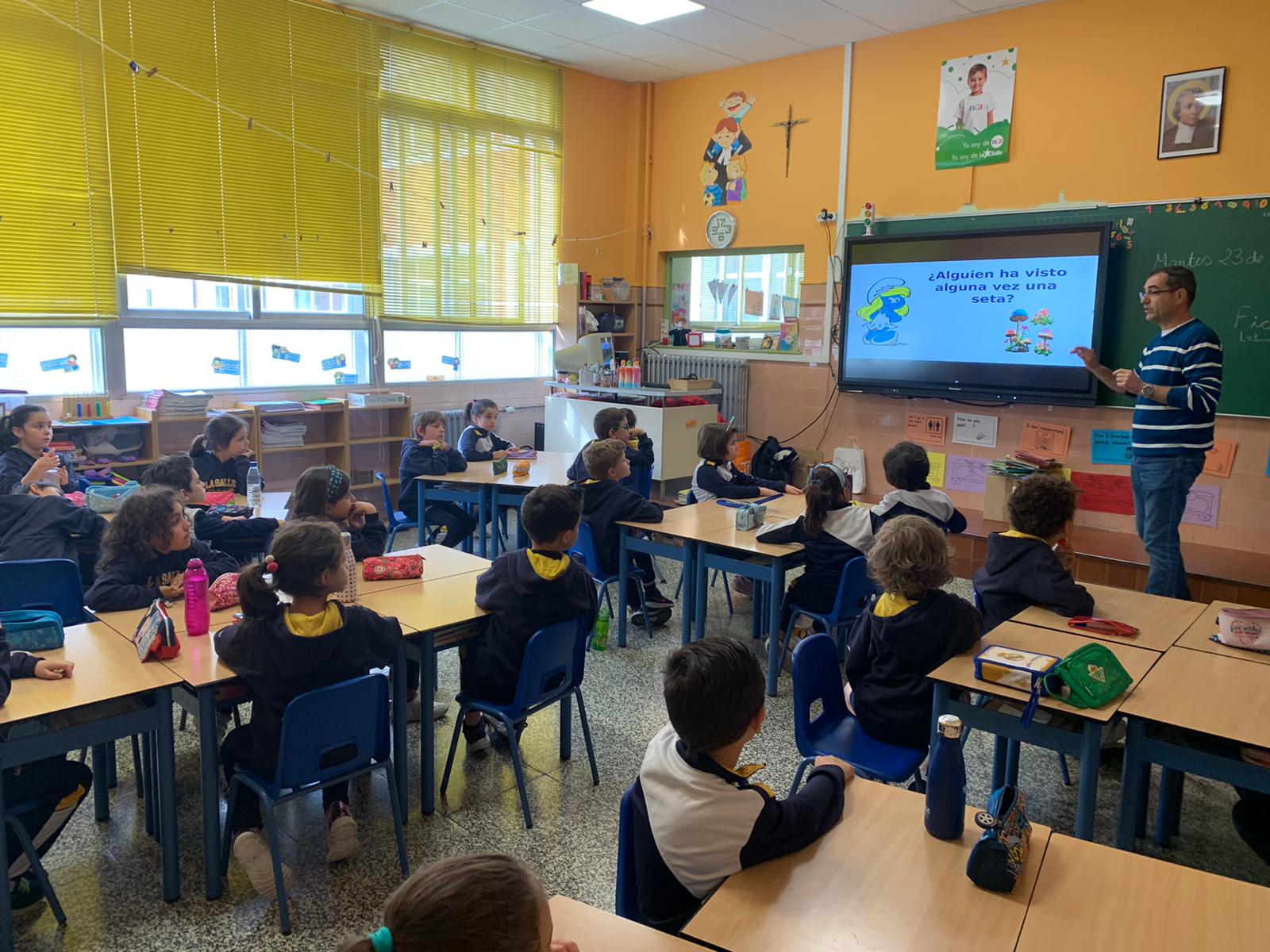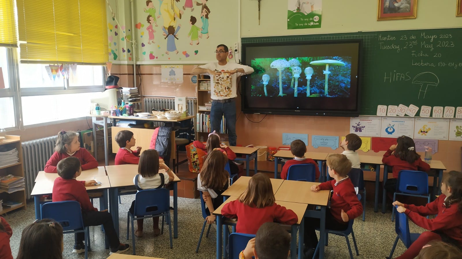 Durante la semana pasada, las clases de 1º de Primaria recibieron una visita muy especial. Raúl Pérez, padre de Ariadna (1ºB) y un apasionado experto en el mundo de las setas, compartió con nosotros su conocimiento y entusiasmo sobre las curiosidades y peculiaridades del maravilloso mundo de los hongos.